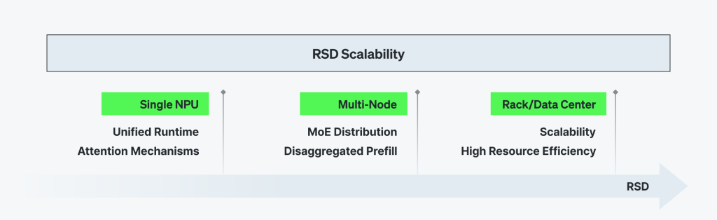 This architecture forms the foundation of RSD (Rebellions Scalable Design), a distributed system framework that extends LLM serving beyond a single device. RSD supports multi-node deployments, disaggregated prefill, and Mixture of Experts (MoE) routing, enabling scalable inference while preserving performance.