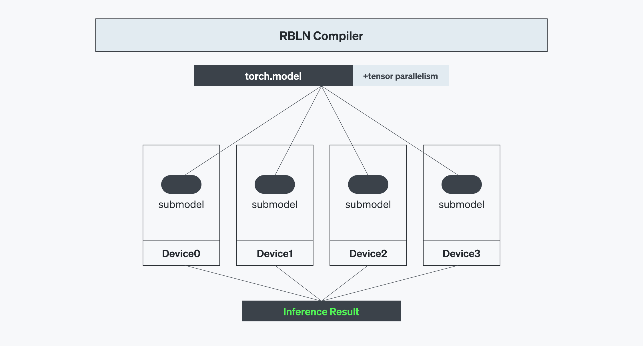 RBLN Compiler handles both the splitting and reconnecting of operations without user intervention, simplifying tensor parallelism from the user’s perspective.
