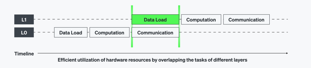 With layer pipelining within each device, RBLN Compiler enables seamless inter-device communication. This technique ensures that all operations are processed in parallel in a way to reduce idle time, maximizing hardware utilization while minimizing communication overhead.
