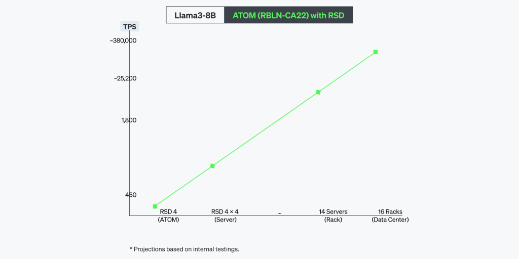 RSD, with its wide range of deployment options, including cards, servers, and rack systems, successfully delivers linear scalability. Achieving throughput that scales directly with the increasing number of devices while maintaining consistently low latency is a technically complex challenge. It requires precise optimization of data synchronization across multiple nodes, minimizing inter-node communication overhead, and efficiently handling memory bandwidth to prevent bottlenecks. Additionally, maintaining low-latency performance demands advanced techniques in load balancing and dynamic workload distribution to ensure that all devices operate at peak efficiency without delays. By tackling these complexities head-on through cutting-edge hardware architecture and intelligent software frameworks, RSD not only meets these challenges but excels at enabling scalable, high-speed processing as computational demands grow.