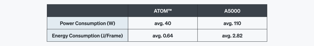 The results in Table 1 clearly highlight ATOM™’s superior performance in running the YOLOv6-Large model in all of the measurements. ATOM™ achieves up to 2.1x performance and 4.5x energy efficiency compared to RTX A5000. This was possible thanks to the architecture, and the RBLN Software Stack that brought it to full utilization.